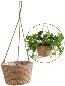 Una maceta que es respetuosa con el medio ambiente y que no daña la salud pero que es duradera y de calidad. Está fabricada con una cuerda que se va enrollando hasta formar una maceta que va unida a una cuerda para que se pueda colgar.
