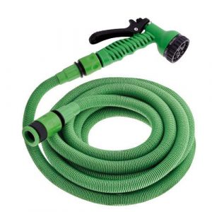 Es capaz de expandirse hasta el triple de su longitud original. Es un modelo ideal para jardines medianos que necesiten una manguera de buena extensión, pero a que la vez sea fácil de guardar después del uso.