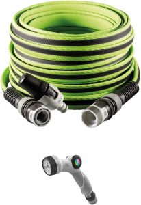 Es una manguera de jardín que puede extenderse hasta 100 pies (30 metros) sin inconvenientes. Su diseño avanzado hace que no se retuerza y disminuye las probabilidades de enredarse prácticamente al mínimo.